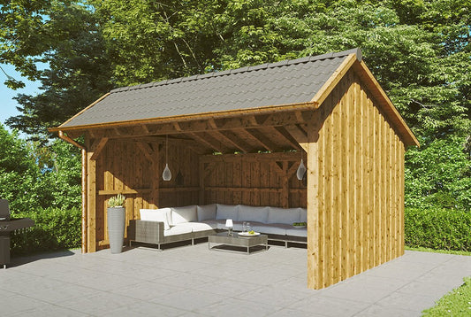 Een beschermde plek in de tuin die niet alleen tuingereedschap en voertuigen droog houdt. Steeds meer tuineigenaren maken van koetshuizen bijvoorbeeld ook een individuele tuinkamer . B. als gezellige zithoek met barbecueplek of buitenkeuken. De houtsoort die voor uw koetshuis wordt gebruikt, is duurzaam en weerbestendig larikshout . Afhankelijk van de gewenste stijl kunt u kiezen uit een natuurlijke kleur of grijs.