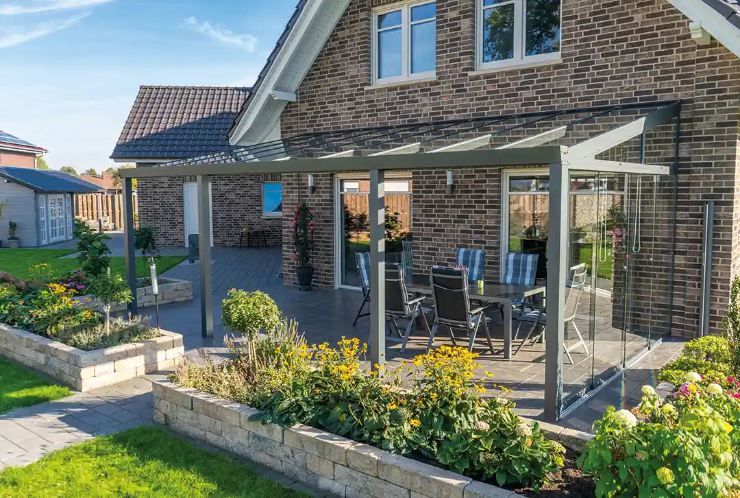 Glas oder Doppelsteg? Seiten- und/oder Vorder-/Rückwände? Erweitere ganz einfach dein Terrassendach -
