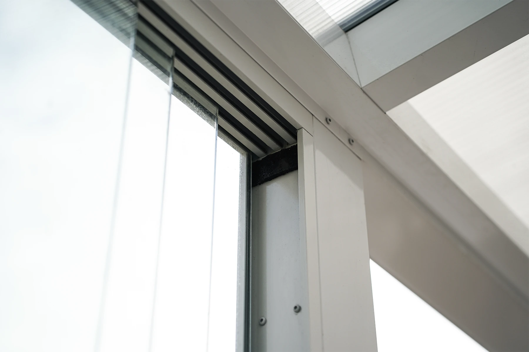Unsere Glasschiebewände aus 10mm sorgen nicht nur für eine luftige Optik, sondern isolieren dank der Verglasung den Innenraum. So bleibt es auch an kühlen Tagen gemütlich mit einem herrlichen Ausblick in die Natur. Durch die 10mm starken Elemente erhält man ein besonders stabiles und robustes Gesamtbild.