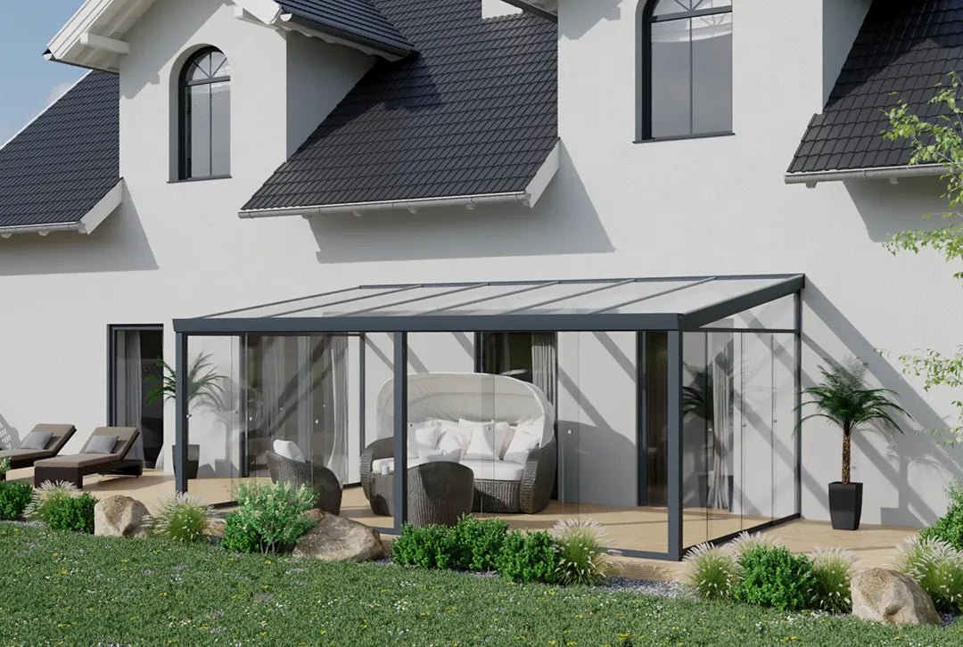 Hergestellt aus robustem Alu, das für seine Langlebigkeit bekannt ist, und in einem stilvollen anthrazit gehalten, ist diese Überdachung eine attraktive und praktische Lösung für deine Terrasse. Ob für gemütliche Abende im Freien oder als geschützter Bereich für Pflanzen und Möbel – dieser Kaltwintergarten erfüllt alle Anforderungen.