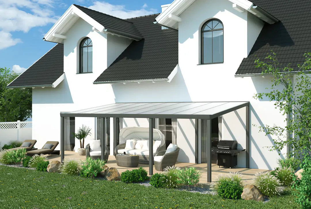 Hergestellt aus robustem Alu, das für seine Langlebigkeit bekannt ist, und in einem stilvollen schwarz gehalten, ist diese Überdachung eine attraktive und praktische Lösung für deine Terrasse. Ob für gemütliche Abende im Freien oder als geschützter Bereich für Pflanzen und Möbel – diese Terrassenüberdachung erfüllt alle Anforderungen.