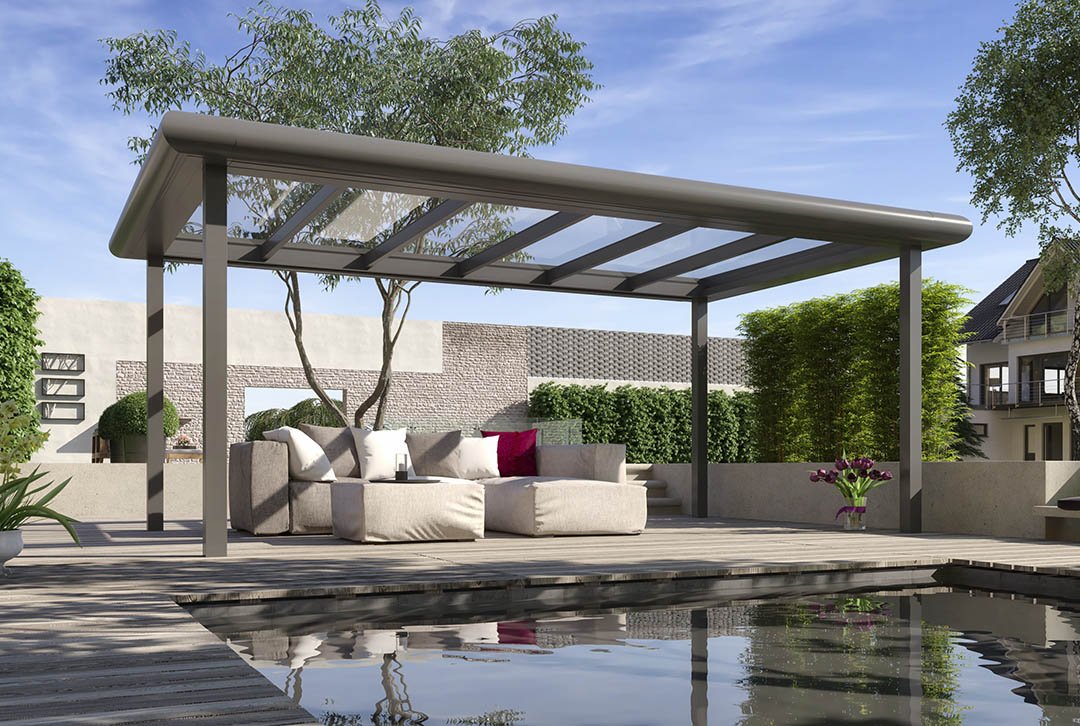 Das Flatroof bietet großartige und vielseitige Möglichkeiten zur Abdeckung deiner Terrasse. Die flache Form des Daches, das sich auch sehr gut als Pergola oder Carport eignet,