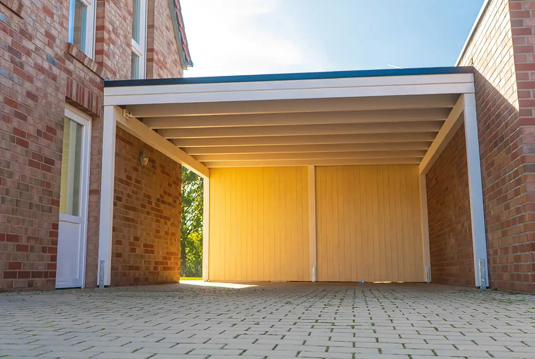 Kies voor onze carport met plat dak van BSH-sparrenhout als u op zoek bent naar een ruime en stijlvolle oplossing die bescherming biedt zonder dat dit ten koste gaat van de openheid. Deze carport is ideaal voor iedereen die een ruime, gemakkelijk toegankelijke schuilplaats voor zijn voertuigen nodig heeft. Wij ondersteunen u graag bij de planning en productie van uw carport op maat.