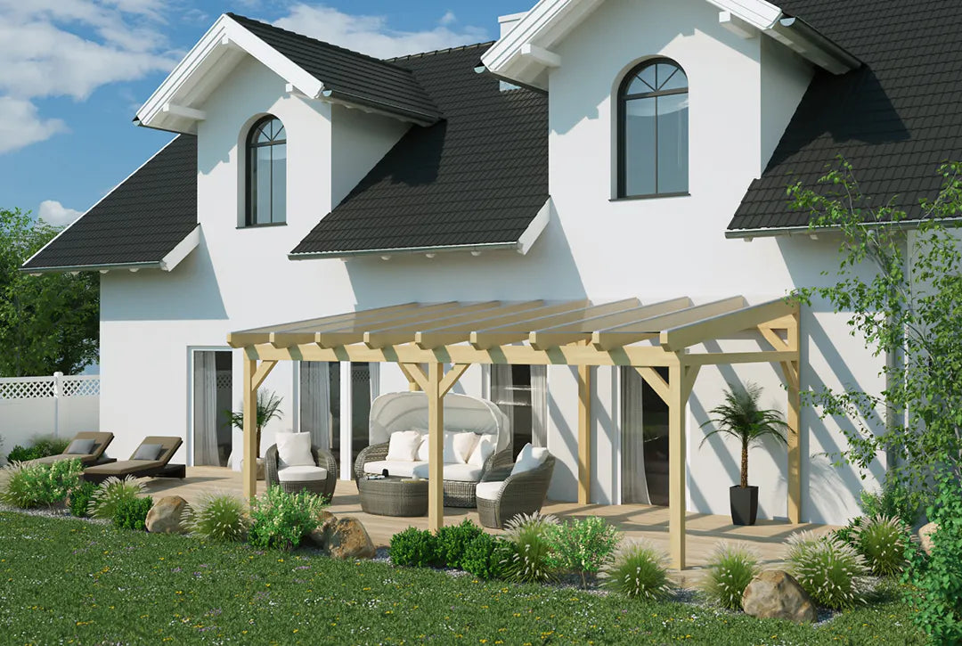 Deze luifel is gemaakt van stevig hout dat bekendstaat om zijn duurzaamheid en is afgewerkt in een stijlvolle grafietgrijze kleur. Het is een aantrekkelijke en praktische oplossing voor uw terras. Of het nu gaat om gezellige avonden buiten of als beschutte plek voor planten en meubels – deze terrasoverkapping voldoet aan alle eisen.